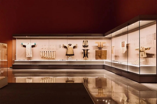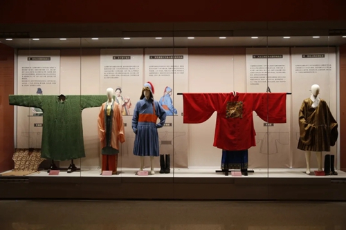 作为衣冠大国,中华服饰在兼容并蓄中融合发展,历朝历代服饰样式各异、纹饰精美、工艺精湛,蕴藉着丰富的文化内涵。“衣冠流传”服饰保护单元展示了通过传统与科技相结合的方法进行保护性修复的古代服饰,包括汉代云气吉语纹锦、北魏素绢裤、唐代团窠对鸟纹锦、元代织金锦、罟罟冠罩、辫线袍等,其中元代花鸟纹织金锦罟罟冠罩为首次展出。观众可以在展览中领略这些服饰及织物原本的风采,了解其形制与织造工艺中的奥秘,感受文物所承载的丰富历史信息与彰显的时代精神。