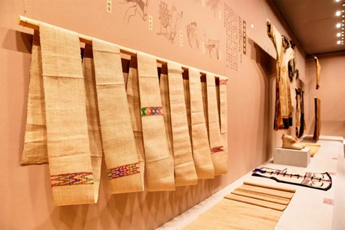 中国幅员辽阔,民族服饰形态多样,承载着厚重的文化底蕴,被称为“穿在身上的史书”。“多元一体”民族服饰单元从礼仪角度诠释中华服饰的人文之美,从工艺角度彰显中华服饰的装饰之美,从材质角度展示中华服饰的自然之美。展品中包含数十项非遗技艺与传统工艺,例如缂丝织造技艺、火草织布技艺、枫香染制作技艺、艾德莱斯绸织染技艺、赫哲族鱼皮制作技艺、黎族树皮布制作技艺等,丰富多彩、绚丽多姿、美轮美奂、精妙绝伦,共叙中华各民族服饰文化多元一体、美美与共的璀璨篇章。