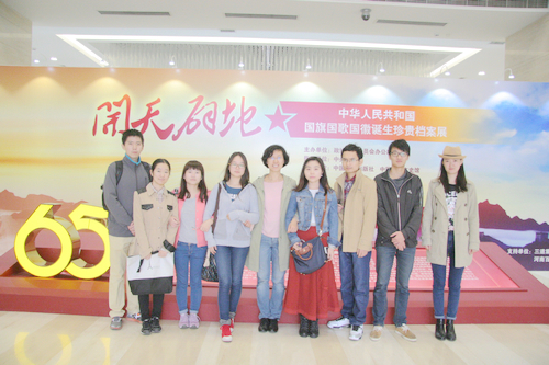 【新闻中心讯】10月9日下午4点,正值国庆65年、我校建校50年之际,bb贝博艾弗森官网宣传部记者团负责人郄程老师带领记者团成员九人赴中国政协文史馆参观了“中华人民共和国国旗、国歌、国徽诞生珍贵档案展”。