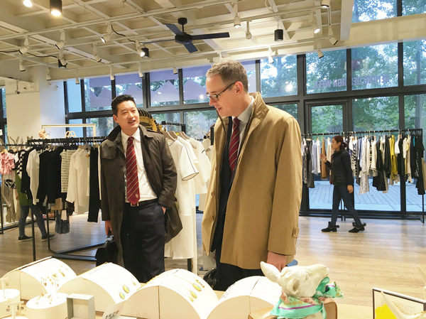 11月18日,英国卡迪夫城市大学(Cardiff Metropolitan University)国际事务发展部总监Lloyd Powell、驻华首席代表李斌访问我校,继续教育学院院长史学伟、院长助理兼国际合作中心主任贾双燕接待了来宾,项目主管余天韵带领来访嘉宾参观了我院国际项目教学资源、曾设计制作APEC会议领导人着装的高级定制中心、2022冬奥会运动装展览,以及时尚产业创新园的“土城空间”。