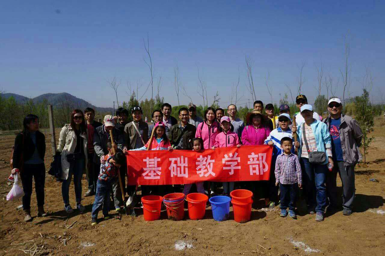 早晨8点,大家准时在北门乘坐班车前往怀柔植树基地。有一家三口来的,有父子或母子来的,或教师本人来的,车上欢声笑语,一路飘洒。到了植树基地,先进行了植树要领培训,接下来大人孩子齐上阵,热火朝天地干起活来。有的孩子小,两个人拿一把铁锹,有的一人提一桶水。大人挖坑,孩子种树浇水。不一会功夫,20棵松树树苗就稳稳地扎根在地上了。午饭后,我们前往草莓大棚采摘草莓。当天气温很高,草莓棚里更是闷热。每个人手里拿着盒子采摘自己认为最甜的那颗草莓。小孩子们更是高兴。不一会儿,每个人都摘满了2盒草莓。大家稍作休息,品尝着自己亲手采摘的草莓,劳累辛苦一扫而光。下午三点钟我们乘车往回走。家庭日活动是我们分工会的传统,已经持续进行了4年。通过家庭日的活动,让家属了解了学校和对方的工作,更加支持教职工的工作。教职工之间又增进了相互了解,增强了集体凝聚力。这个优良传统我们会继续保持并发扬光大。