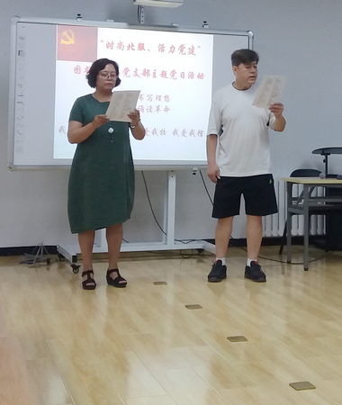 最后大家集体诵读《中国图书馆员职业道德准则》,坚定了对图书馆工作的理解与热爱,表达“我爱我国 我爱我党 我爱我校 我爱我馆”的理想信念。
