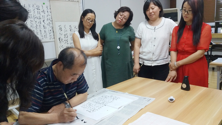笔墨纸砚 书写理想:邀请图书馆前任馆长刘相臣老师指导馆员以笔墨纸砚的形式学习党章党规、重温革命历史。