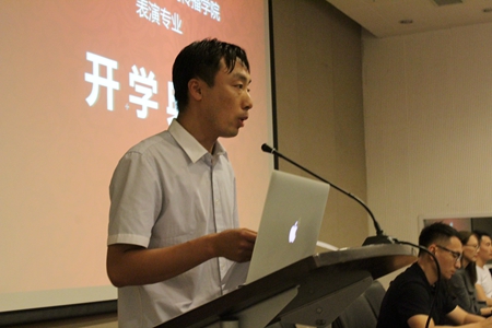 9月2日下午,我校时尚传播学院表演专业2017级新生开学典礼在艺术楼二层报告厅举行。时尚传播学院党总支书记徐剑、副院长(主持工作)谢平、副院长李玮琦、党总支副书记马千里、服装表演教研室的教师和辅导员以及优秀校友孟飞先生出席本次开学典礼。会议由2017级表演专业班主任赵冰清老师主持。