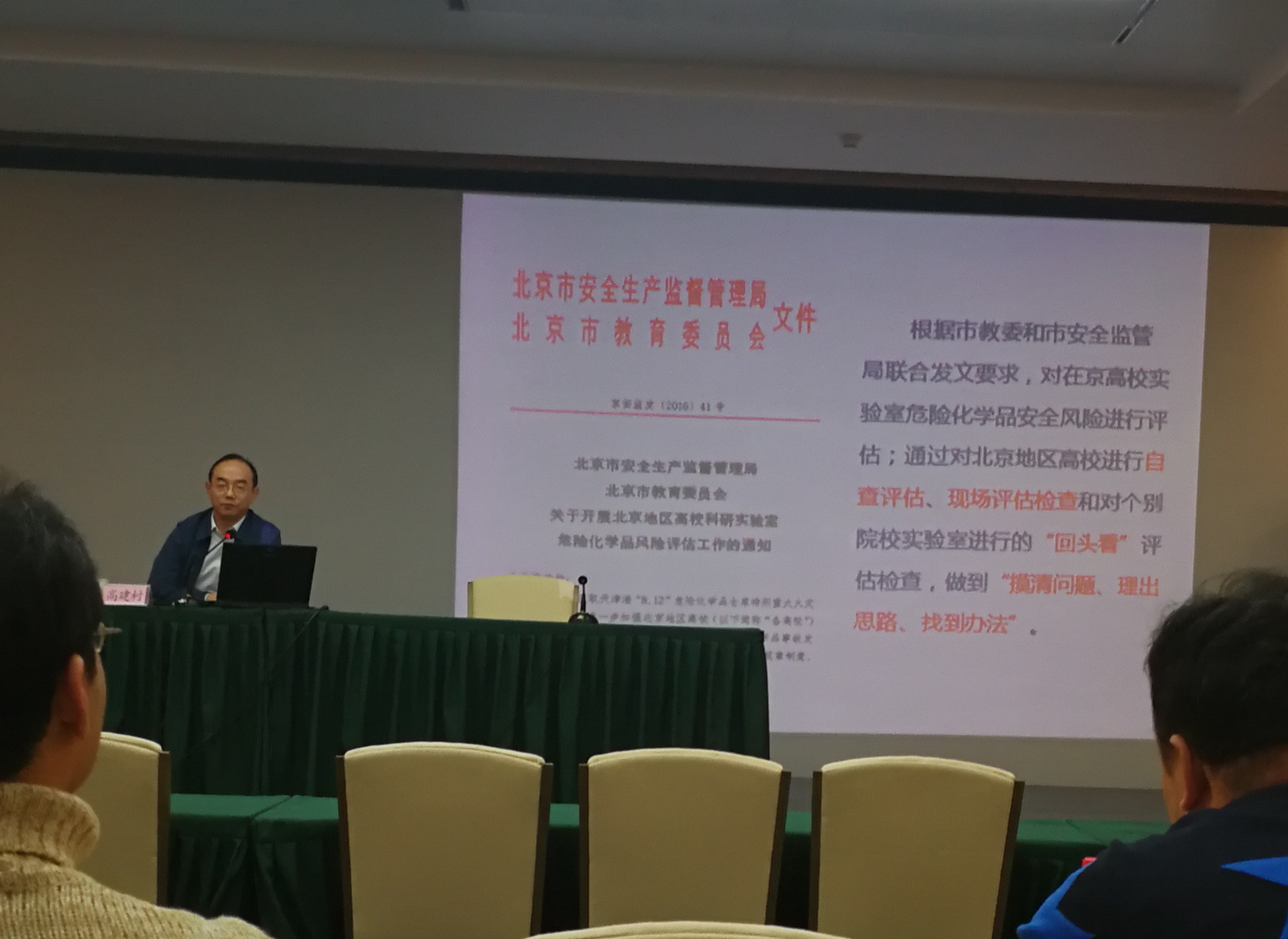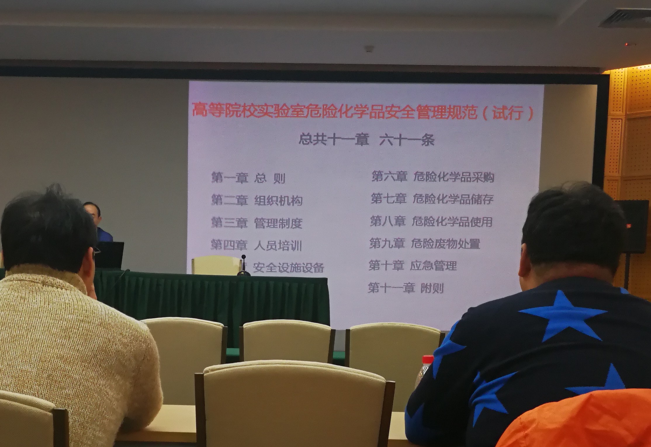 我校与会教师认真听取培训会精神,培训会的召开为北京市高等院校实验室安全统一管理做好铺垫,为我校实验室今后安全管理,尤其是危险化学品管理提供了清晰思路和理论支持。