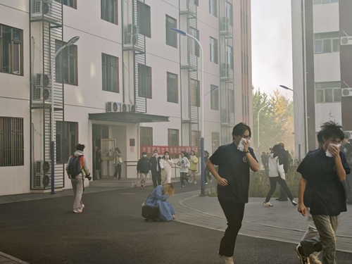 接警后,北校区应急队伍紧急奔赴现场、开展先期灭火和救援工作,学工队伍协同组织疏散、引导学生归建、清点报告人数。同学们按照平时教育的方法和要求,用毛巾等简易材料捂实口鼻、防范烟气,紧张有序撤出危险区域。