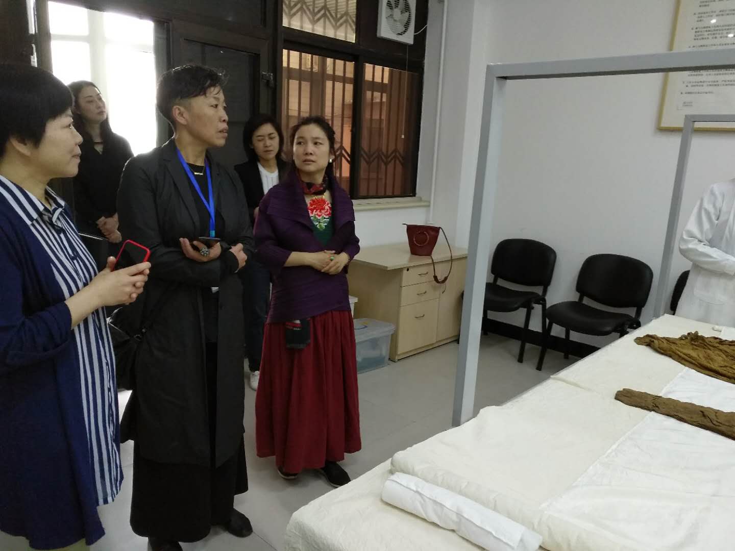 展厅参观结束后,专家组山东艺术学院设计学院院长荆雷教授走访了民族服饰博物馆纺织品文物修复室,调查了修复室的基本情况和对在校生专业培养方面所做的工作。