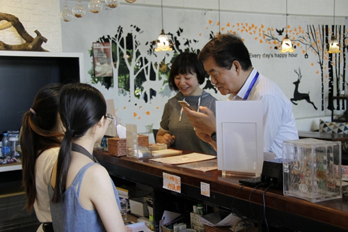 随后,相关人员陪同王教授参观了大学生创业指导中心、勤工助学中心、企业孵化工作室以及咖啡书屋。在企业孵化室,王教授认真倾听学生的创业过程;在咖啡书屋,王教授对学生创作的手工作品赞赏有加并亲自选购。他对学校开展的一系列创业指导工作给予了好评。