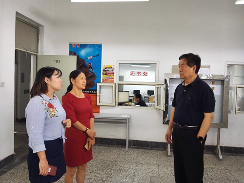 随后,王教授又走访了樱花园校区图书馆,对图书馆中外文书库以及各阅览室的藏书建设,电子阅览室的设施及使用情况,以及图书馆的信息服务能力进行了详细询问,李晓玲副馆长进行了深入解答和汇报。