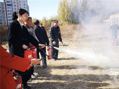 演习伊始,商务部安保处刘萍处长针对初期火灾扑灭、灭火器正确使用及注意事项进行了详细的讲解。随后,北校区主任单兵老师又向参加演习的师生介绍了冬季火灾易发多发的主要原因及特点,并根据大学生的日常生活、学习场景,重点强调了校园生活尤其需要注意的安全隐患及防治原则,使参与活动的师生对火灾预防、预警、处置及逃生的措施有了清晰的了解。最后,综合办老师联合商务部安保人员模拟了火灾现场,同学们带着严肃认真的态度,快速有效的扑灭火焰,演习活动圆满结束。