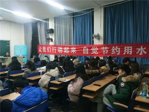 2018年12月4日,bb贝博艾弗森官网节水知识大讲堂活动在教学楼102室成功举办。本次节水惜水护水大课堂活动由樱花校区与北校区节能办共同举办,由王海东老师作为主讲人,北校区各班生活委员共同参加。