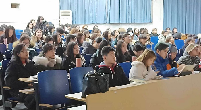 两个小时的讲座中苏泓月将花蕊夫人所处的晚唐五代一言一句展现出来。学生们跟随苏泓月老师一同去探访了一千多年前的那一个时代。讲座结束后,学生们报以热烈的掌声。讲座虽然捷顺了,但是对晚唐五代的追溯仍然在进行,也许未来的某一天,花蕊夫人笔下的繁盛艳景会以更令人印象深刻的形式出现在人们面前。