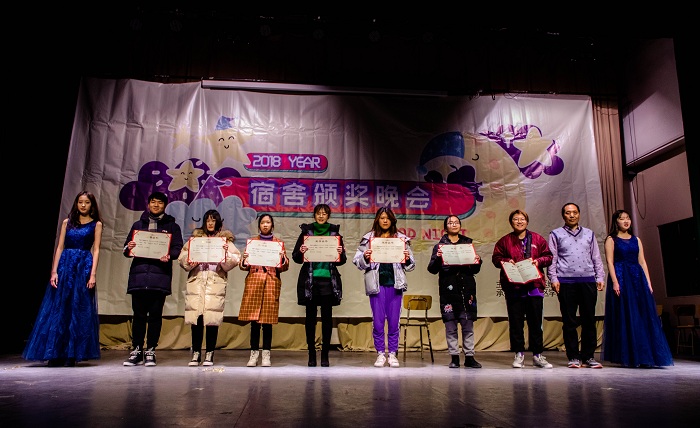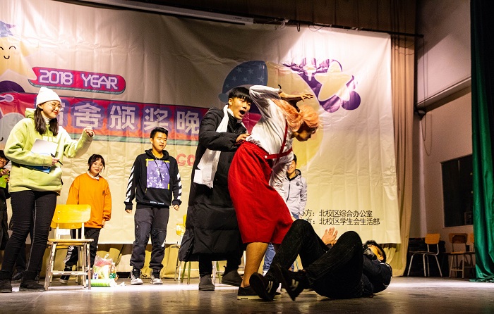 劲舞过后,主持人谭冉阳和王恕登场,宣布宿舍颁奖晚会正式开始。