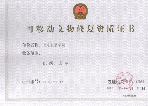 2018年10月末,我校申请到由北京市文物局颁发的文物修复资质。民族服饰博物馆的纺织品文物保护方向的3位学生已于2018年10月初和12月末,派往文物医院就科技检测方面进行了检测分析方面的实践学习,今年还要继续就预防性保护方面的实践进行学习。此次参观学习取经,势必对进一步加强馆际交流、提高文物保护意识、重视修复专业人才的培养等方面,大有裨益。“工欲善其事,必先利其器”,加大设备投入的力度,使传统工艺和现代科技相结合,必将更好地造福于文物修复工作。