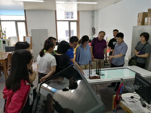 采选图书之外,全体党员还在工作人员的带领下,实地参观考察了图书分拣加工库、打包及分发配送库、珍贵图书展示厅、图书馆设备展示间等工作基地,深入了解一本图书从下单订购到图书馆入库的整套加工流程。在图书馆设备展示间,老师们对打标机器和智能书法设备尤为感兴趣,实际体验和感受新设备的便携。