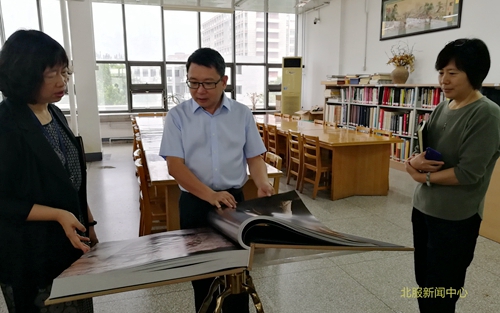 座谈会前,詹炳宏在图书馆馆长李晓玲、直属党支部书记于红玮陪同下,先后到图书馆各阅览室、密集书库等处进行实地考察,了解了图书馆目前馆舍利用、设施改造及馆藏资源建设等情况。