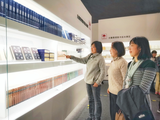 新中国图书版本展包括“领袖著作版本”“社会科学图书版本”“文学艺术图书版本”“科学技术图书版本”“古籍整理图书版本”“连环画版本”展区和“新时代图书版本”特别展区,集萃新中国成立以来出版的代表性图书版本约12000册。这些版本,传承中华文化,书写中国故事,承载了几代人的美好记忆,展览专门设立纸质版本体验区、网络版本体验区。参观过程中,图书馆直属党支部书记于红玮和资历丰富的馆员探讨了版本特点、藏书历史、古籍典藏、图书分类等相关专业知识,全体图书馆员强化了专业技能,反思日常工作方法,为进一步提高图书馆信息服务能力夯实基础。