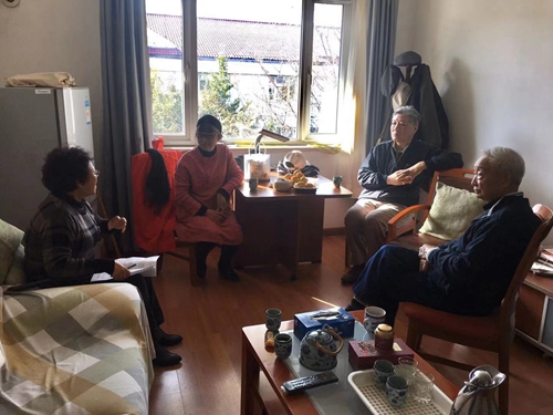 天通苑党支部组织党员在汇晨养老院进行集中学习研讨。支部书记陈广恩介绍了学校开展主题教育活动现阶段进展,并谈了自己学习的体会;退休校党委书记凌侠锋同志结合自己年轻时的经历谈了对“初心”和“使命”的认识;杨建一、董书调、郑友增等同志纷纷发言。整个活动持续三个多小时,大家纷纷表示从活动中收获很大。