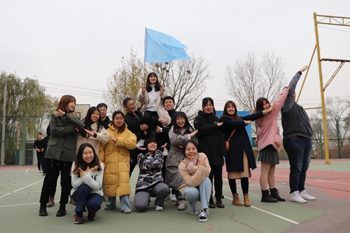 参观学习结束后,全体师生乘车前往瑶台山庄进行党性教育培训。到达场地后,通过破冰仪式,老师与同学们迅速熟悉彼此的名字和爱好,组成活动小组,并开展了“旗语标兵”“蛟龙出海”等形式丰富的素质拓展活动。通过一系列团队配合活动,同学们充分锻炼了逻辑思维能力、语言沟通能力和团队协作能力,展现了新时代北服青年的蓬勃朝气和青春活力。活动尾声,全体师生共同唱起校歌《与美同行》。