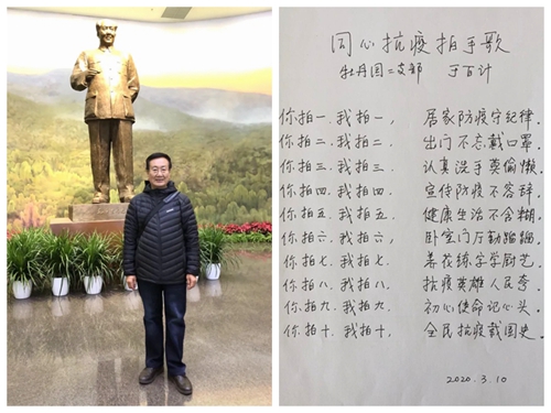 退休原北环艺党委书记、支部委员于百记同志做开场白,并朗诵了自己创作的《同心抗疫拍手歌》。