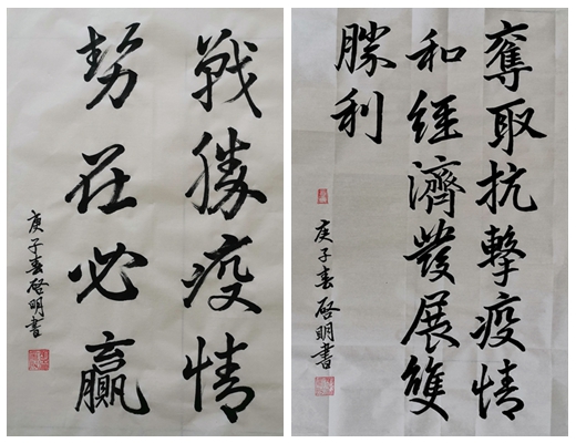蔡毅同志向大家推送了疫情期间支部党员积极参与学校、社区、侨联疫情防控展出的优秀作品,鼓励大家继续发挥特长,用书法、绘画、手工等作品为抗击疫情鼓劲加油;认真学习防疫知识,以身示范,做好家庭引导,积极发挥正能量,以实际行动践行离岗不离党,退休不退色,初心不改、使命长存的共产党人本色。