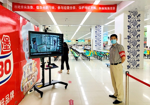“同学请戴口罩”“对不起老师,我忘了”“来,先给你一个。下次记得带”“谢谢老师”“不客气”,……,一声声和谐的对话在食堂里来回反复回响。在短暂的一个小时的志愿服务时间内,九支部的六位同志都从始至终地认真值守着自己负责的岗位,甚至在到时间后还有的同志仍意犹未尽。为响应国家疫情防控常态化的号召,即便疫情形势得到控制也要保持警惕不松懈,老师和同学们经过这么长时间都明白了这样做是对大家自己的健康,同时也是对他人的健康负责。机关九支部的全体成员和国资处的同事们都以高度的热情期待着下一次志愿服务的到来。