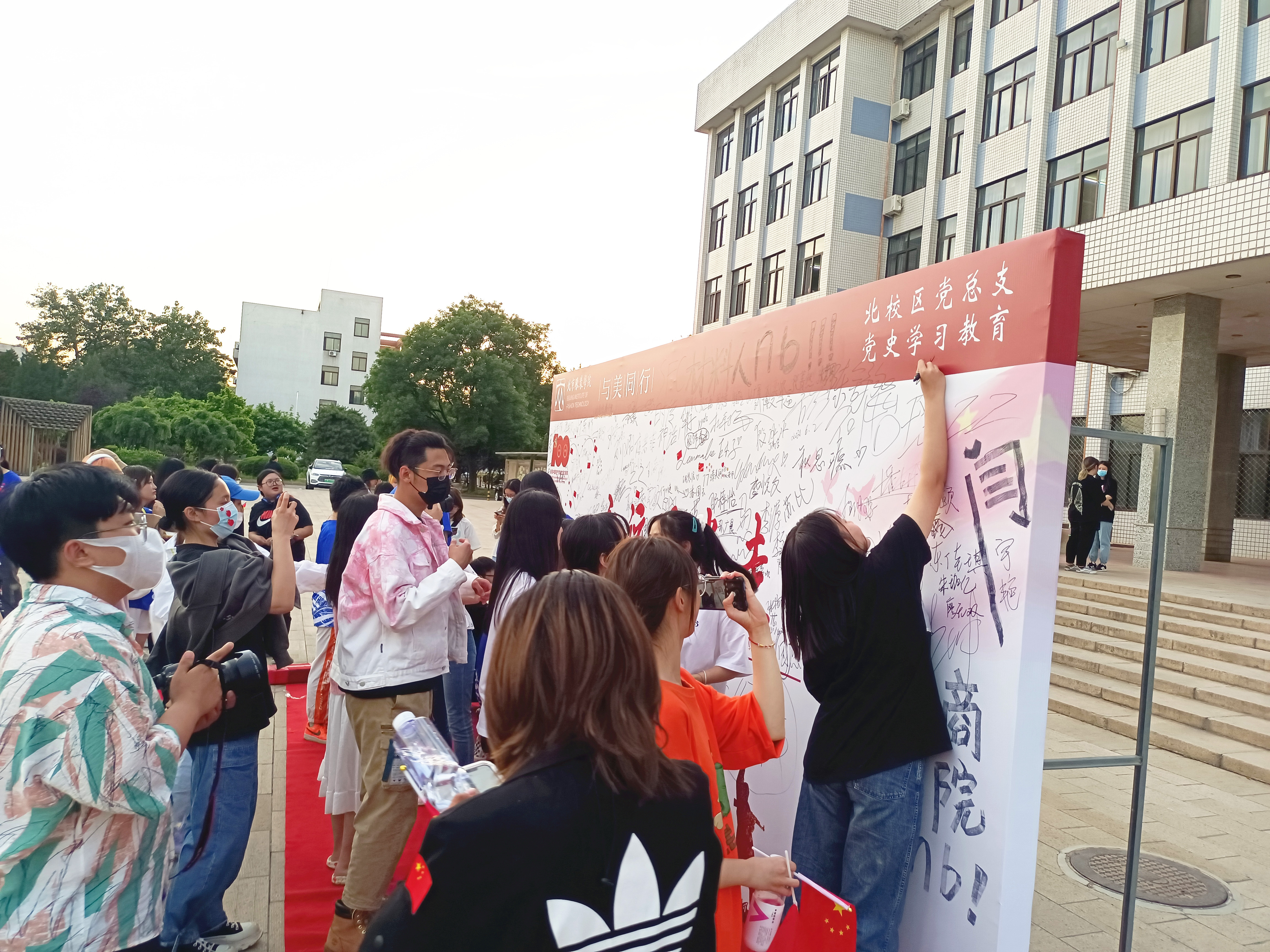 傍晚时分,活动全体参与人员在漫天红霞的映衬中在签名墙上留下对党和国家的祝福并合影留念,活动圆满结束。