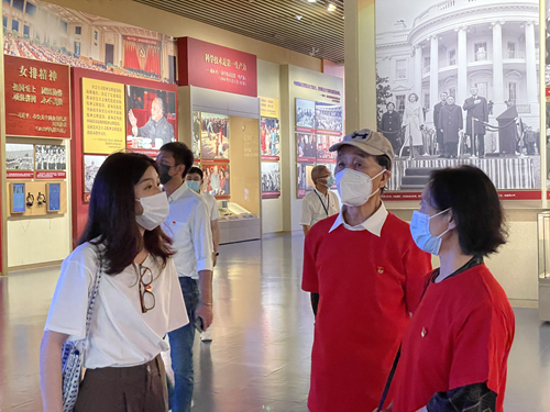 为学习贯彻习近平新时代中国特色社会主义思想主题教育走深走实, 6月13日上午,离退休党委联合艺术设计学院党委组织离退休党员代表、学生党员代表、在职党支部共40余人,前往中国共产党历史展览馆开展“学党史、强党性”“老少”共建主题党日活动,活动由离退休党委书记韩福华主持。