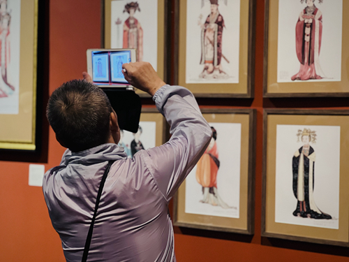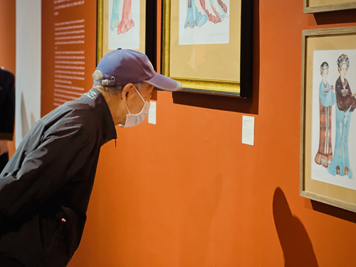 展览通过大量图片、影像资料、服装实物从“慈悲怡然——敦煌菩萨服饰”“似锦繁华——敦煌服饰图案”“净土庄严——敦煌天人服饰”“人间万象——敦煌世俗人物服饰”“随色象类——敦煌服饰艺术再现”和“守正创新——敦煌服饰创新设计”六部分充分展示了敦煌服饰文化及其当代价值。在参观过程中,刘元风教授指出,这些画稿和作品不同于对敦煌壁画现状的复制,也不同于对敦煌壁画原状的复原,而是在忠于敦煌壁画造型、色彩和构图的基础上,运用服装语言和图案学的组织构成原理,加入绘制者和制作者对图像新的理解和新的诠释,探索敦煌服饰文化的现代设计转化路径,最终再现并赋予敦煌服饰文化以新的面貌,是以珍贵的一手资料和艺术感受为前提的艺术实践型研究。刘元风教授重点强调,敦煌文化博大精深,中心团队将继续努力学习研究,在传承敦煌服饰文化的过程中,探索创造性转化和创新性发展成果,更好服务于人民美好生活的需求。