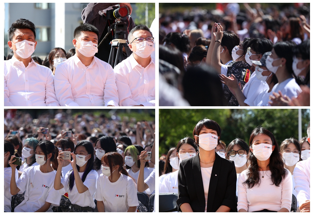 “开学第一课”形式新颖,气氛热烈。整个课程的讲授的过程,穿插着bb贝博艾弗森官网近年来服务国家重大项目和重大任务的各类服装成果展示。服装表演专业50余名新生身着2020东京奥运会开幕式运动员礼仪服装,国庆70周年民兵方阵服装、群众游行服装,中国共产党成立一百周年大会领颂、合唱服装,中国乡村劳动者服装设计服装以及2022年冬奥会运动员及赛事服装以及“最美逆行者”医护服装在秀道上进行走秀表演。这场别开生面“秀道”开学第一课,引得现场师生掌声不断,不时拿起手机拍照记录,极大激发了大家爱党、爱国、爱校的情怀。