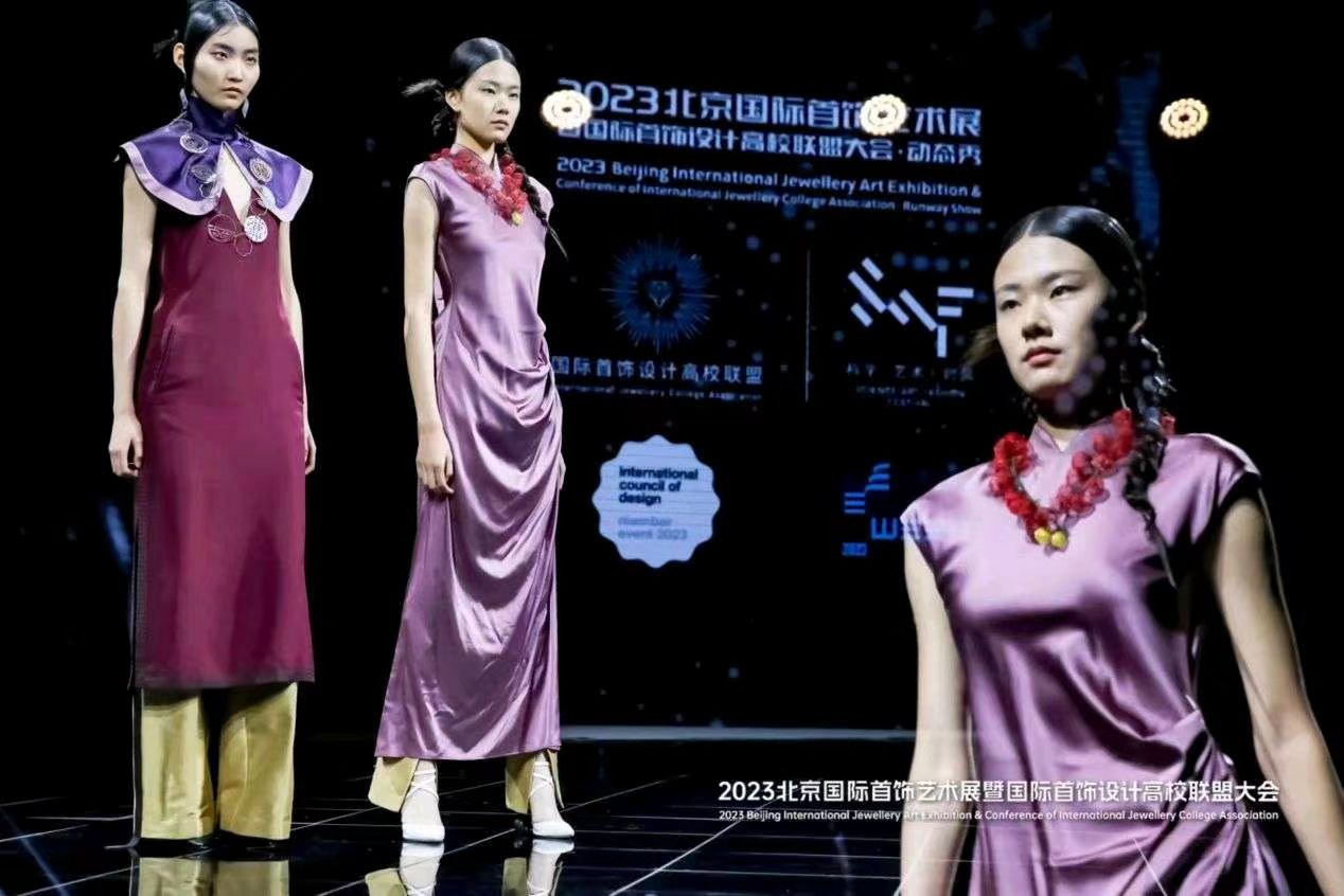 开幕式当天,两场大秀精彩纷呈。首饰作品T台秀展示了从来自全球13个国家和地区的艺术家作品中评选出的200余件优秀代表作品。美轮美奂的场景、时尚创意感极强的首饰,使观众享受了一场艺术的饕餮盛宴;2023第八届国际青年设计师邀请赛优秀作品展演围绕“时尚+科技”的主题,吸引了来自世界各地数十个国家和地区的上千名青年设计师参加。