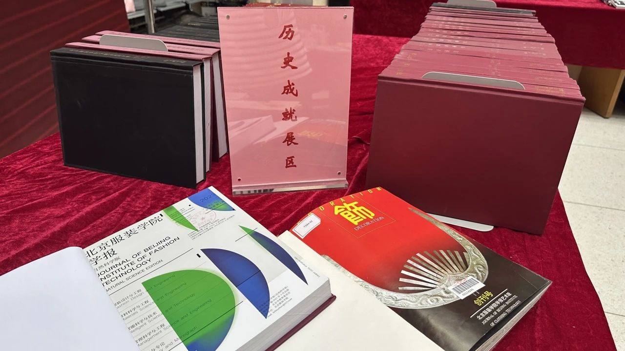 “历史成就展区”深情回望,展示了二十世纪九十年代前学校教师们辛勤耕耘的结晶。一部部著作以及研究生学位论文的手写稿,如同时间印记,诉说着北服人的初心与不懈奋斗。同时,该区域还陈列了《bb贝博艾弗森官网学报》与《艺术设计研究》自创刊以来所有期刊合订本,如同一部部活生生的历史,记录了北服的发展与变迁,见证了北服人的智慧与汗水。