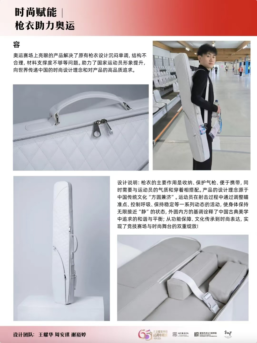 服饰艺术与工程学院射击鞋研发团队由党员师生组成,团队攻坚克难,实现国产射击鞋“卡脖子”问题,射击鞋除颤指标较国外品牌提升46.1%,大大提高运动员重心稳定性和舒适性,助力中国射击队运动员刘宇坤夺得2024年巴黎奥运会射击男子50米步枪三姿项目比赛金牌。此外,刘宇坤在比赛中使用的枪衣也由学院研发,助力国家运动员形象提升,向世界传递中国的时尚设计理念和对产品的高品质追求。学院还接到国家体育总局游泳运动管理中心委托,需要在十天内设计并制作2024年巴黎奥运会中国游泳协会及项目徽章,作为国家游泳、跳水、花样游泳队伍的交换徽章送至赛场。由党员师生迅速组队的设计团队完成十二款徽章和行李牌设计通过审核后,为完成近两万枚徽章制作,设计团队连续通宵高强度推进开模、打样等工作,最终确保准时准点、保质保量交到国家队手中,交换徽章跟随中国代表团将奥林匹克文化与精神传播到世界各地。