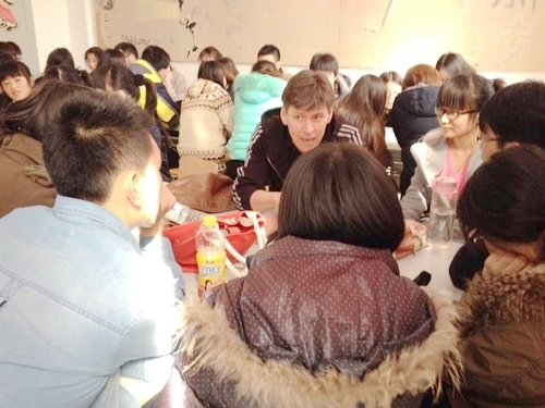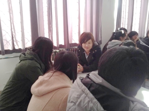 【新闻中心讯】3月13日下午13:00,北校区第一次英语角活动于教学楼105成功举办。此次活动是由外语系主办的面向全校开展的英语学习活动在北校区的延展。活动由英语专业教研室主任杨武遒老师牵头,参加本次活动的指导教师有外教Chris、李傲君老师、王玉丹老师,以及来自不同院系的喜爱英语的同学们。