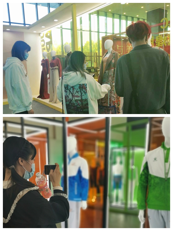 在老师们的带领下同学们依次对两个场馆进行参观,在博物馆中同学们对少数民族服装及服饰产生了浓厚的兴趣,同学们认真观看展馆中精致的服装配饰,在欣赏之余了解到了更多的民族服饰文化及历史。在银色大厅我和我的祖国展览中,展览展示出了北服为国庆70周年庆典服装设计、APEC暨敦煌服饰、防疫装备·无障碍服饰·功能服装、科技冬奥·平昌冬奥北京8分钟·武汉军体会等都贡献了创造力量。同学们在参观中表示:通过参观拓宽了自己的专业知识,在展览的作品中意识到自己可以运用所学专业知识并通过创新创造,大胆探索,将科学、工程、设计与艺术相融合的方式创造出为人民服务的设计作品,也体会到了学科的专业知识和技能的重要性,增强了专业的认同感,对自己是北服人感到骄傲和自豪。