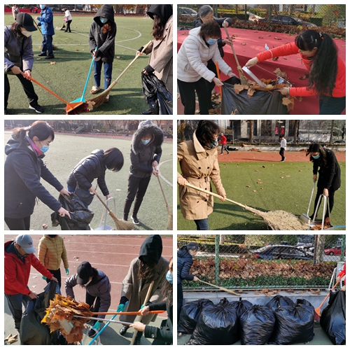 前一天持续一整天的降雨和当天的大风为清扫工作带来了难度,学校操场上堆积了不少落叶。活动过程中,大家手持扫帚、簸箕,划好区域,明确分工,天气虽然寒冷,但每个人都热情高涨,干劲十足,党员们或手拿扫帚清扫地上的落叶,或清运成堆的垃圾,个个不怕脏、不怕累,呈现出一派热火朝天、撸起袖子加油干的景象。充分展现了党员同志们不怕累、不怕脏、不怕苦的精神风貌。