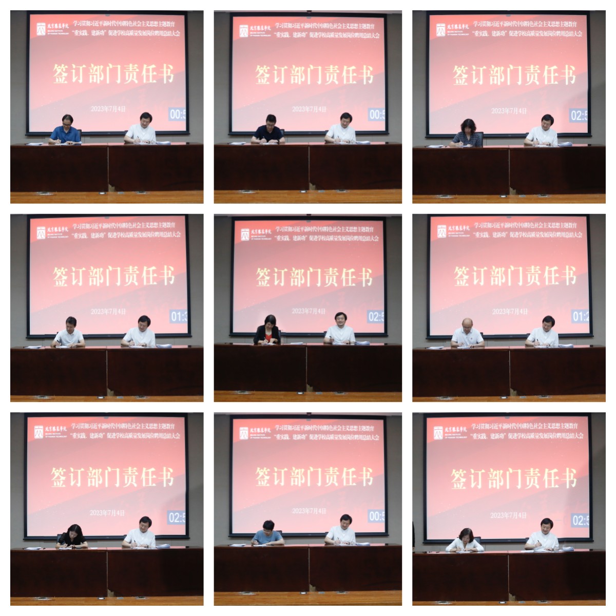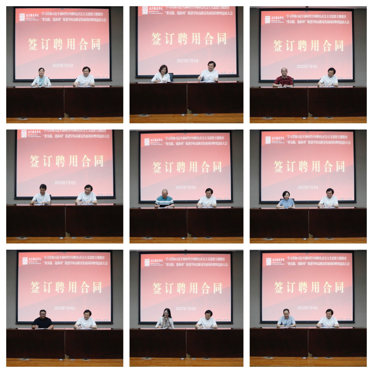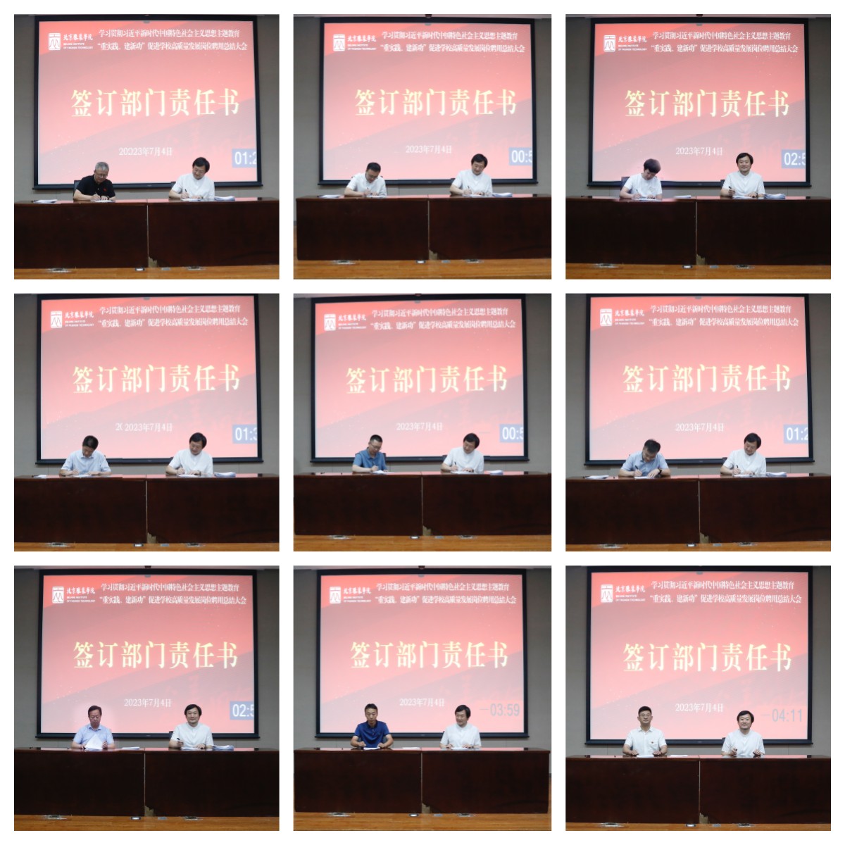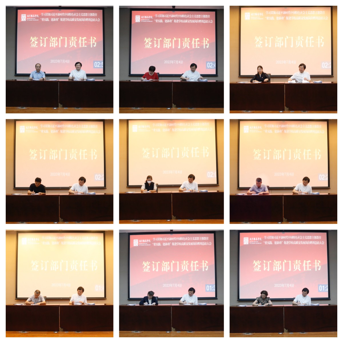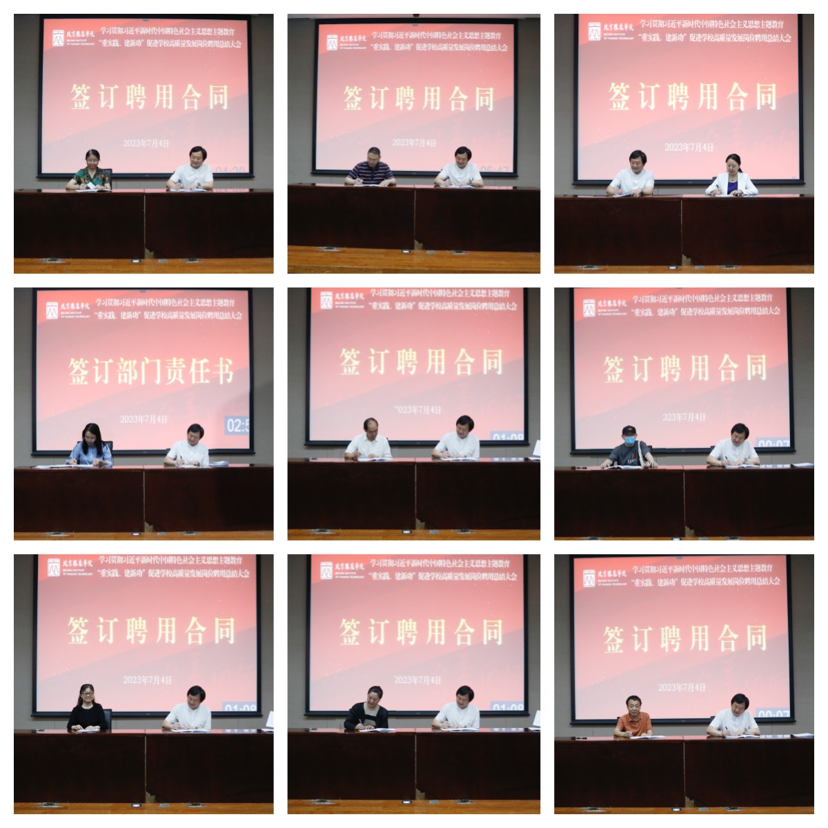 会上,学校与各二级部门负责人签订了部门工作责任书,与教授签订了岗位聘用合同,全体参会人员签订了《师德诚信承诺书》。