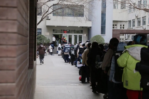 考生排队进入考场