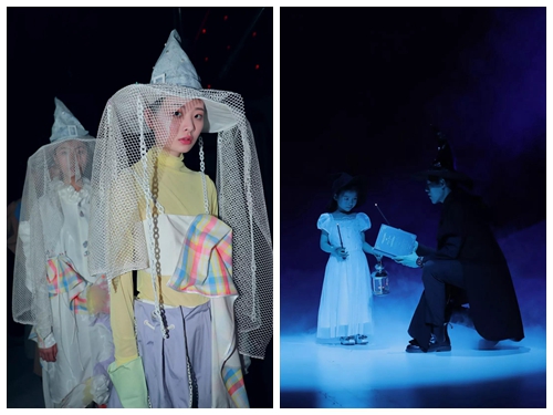 大秀尾声,魔幻空灵的音乐声响起,“下”场设计师们身着巫师袍头戴尖角帽,扮作魔法师亮相。魔杖挥出,青春散场,人生翻开新的篇章。“下”的谢幕灵感来源于“天朝魔法学院”的虚拟设定,服装设计是一段“天方夜谭”般的魔幻旅程,从天地万物中发现美的灵感,并将其用来改变服饰客体的气质形象,艺术创作中的美妙之处不亚于“魔法”。祝福北服女装班,在时代变革期承上启下,将美的“魔法”延续、扩散到更多人的美好生活中去。