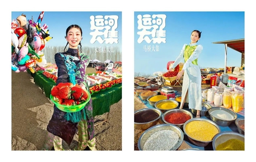 该系列选用八位模特,身着专门为运河文化设计的主题创新服装,以影像打卡形式,与市集元素创意结合,展现传统与现代的交融共生,突出集市繁荣景象、摊主各具特色的经营风貌。