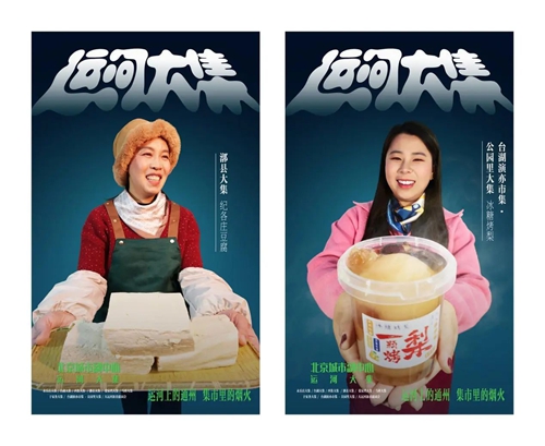 为8个大集“形象代言人”及特色商品拍摄主题大片,将创意文字与影像结合,多维度展示集市品类丰富,形成具有洞察力与宣传性的视觉效果。