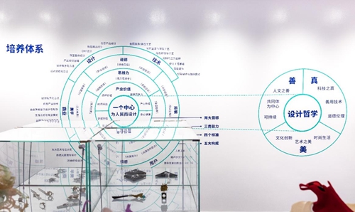“专业发展展望:现在与未来”展厅中展示学院人才培养体系,以及部分师生优秀设计代表作品,反映学院注重理论与实践结合,培养具有创新思维和实践能力的设计人才的成果;展现师生在探索新思路、新技术上的努力。