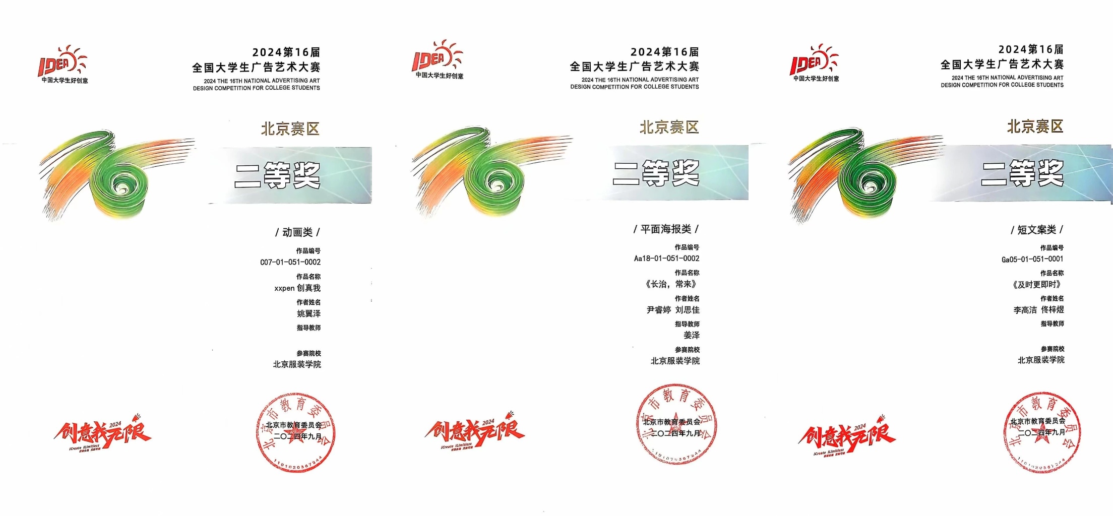 北服师生获得二等奖证书