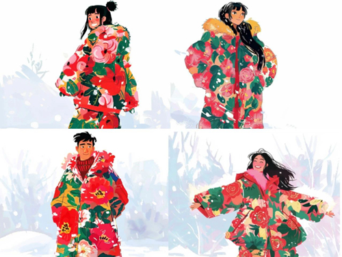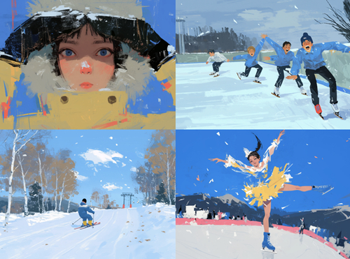 在动态视频制作方面,研究组运用AI生成与视频剪辑技术,制作多个高质量展览宣传片和创意AI作品。其中,《冰城花袄》以快闪形式展现了不同年龄段身穿花袄的人物形象,生动呈现了东北民俗文化的独特魅力;《冰雪黑龙江》将多种风格的冰雪景观与城市风貌完美融合,通过AI技术呈现出不一样的东北风采;《冬跃冰城》以冰雪运动为主题,动态呈现了哈尔滨亚洲冬季运动会中的激情与活力;《雪·花》通过微观视角,展示了雪花形成的奇妙过程。