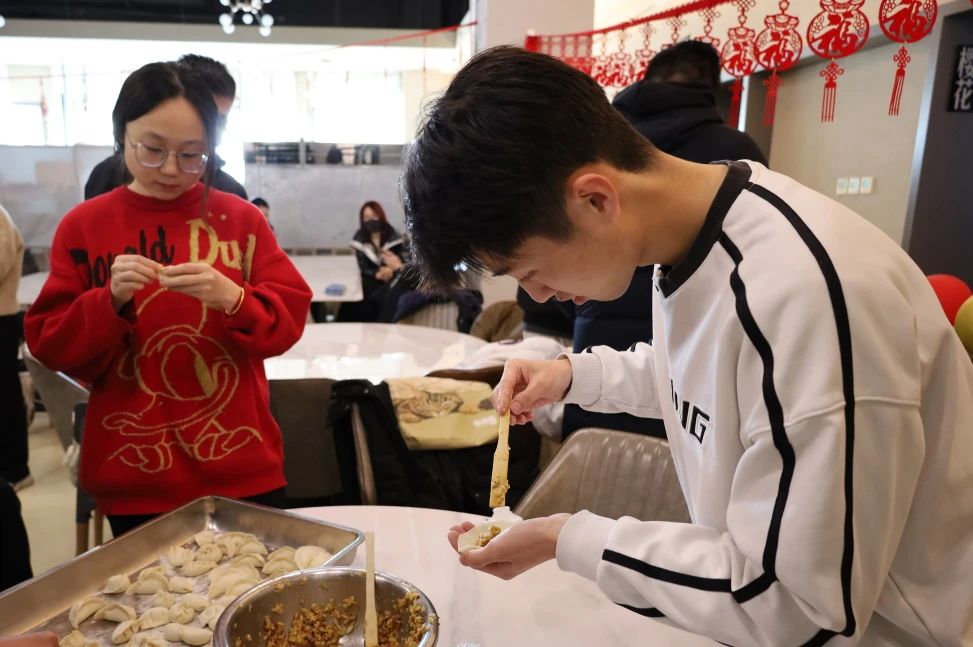 为烘托节日气氛,后勤基建处等职能部门老师提前将“一站式”学生社区布置得喜气洋洋,温馨和睦。校领导与留校同学共叙师生情谊,包起象征幸福美满的饺子,并送上“新春大礼包”。同学们表示,学校的暖心之举,让大家感受到无微不至的关怀,“一站式”学生社区提供了周到的生活保障、交流展示的广阔舞台和丰富多样的学习资源。